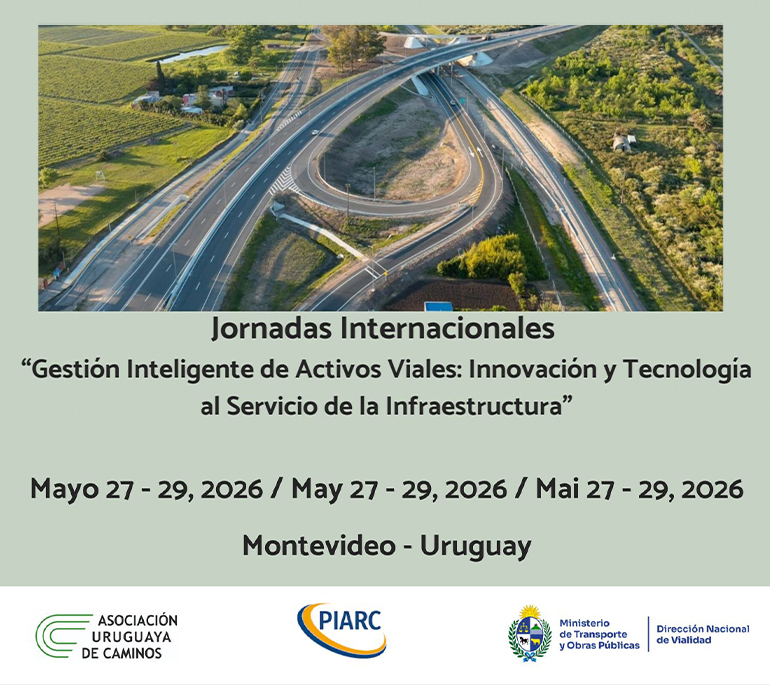 La Asociación Uruguaya de Caminos junto a la Asociación Mundial de la Carretera (PIARC) convocan a todos los interesados a participar del 27 al 29 de mayo en las Jornadas Internacionales “Gestión Inteligente de Activos Viales: Innovación y Tecnología al servicio de la infraestructura”.